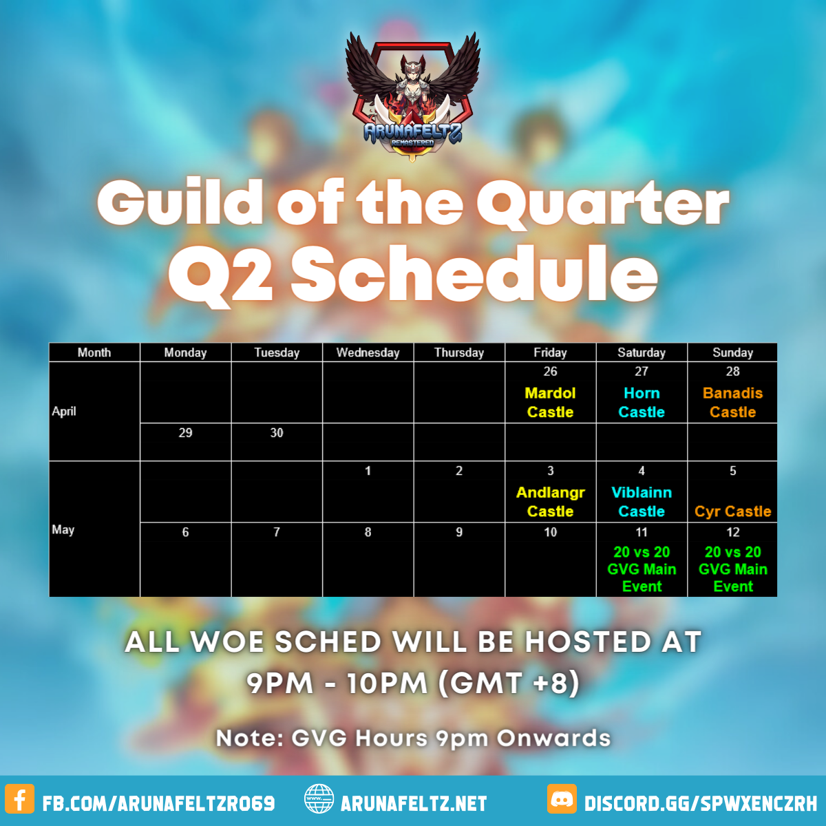 All Arunafeltz MMORPG Rules still apply during the course of the event including discrimination and racial remarks rule and sanctions.